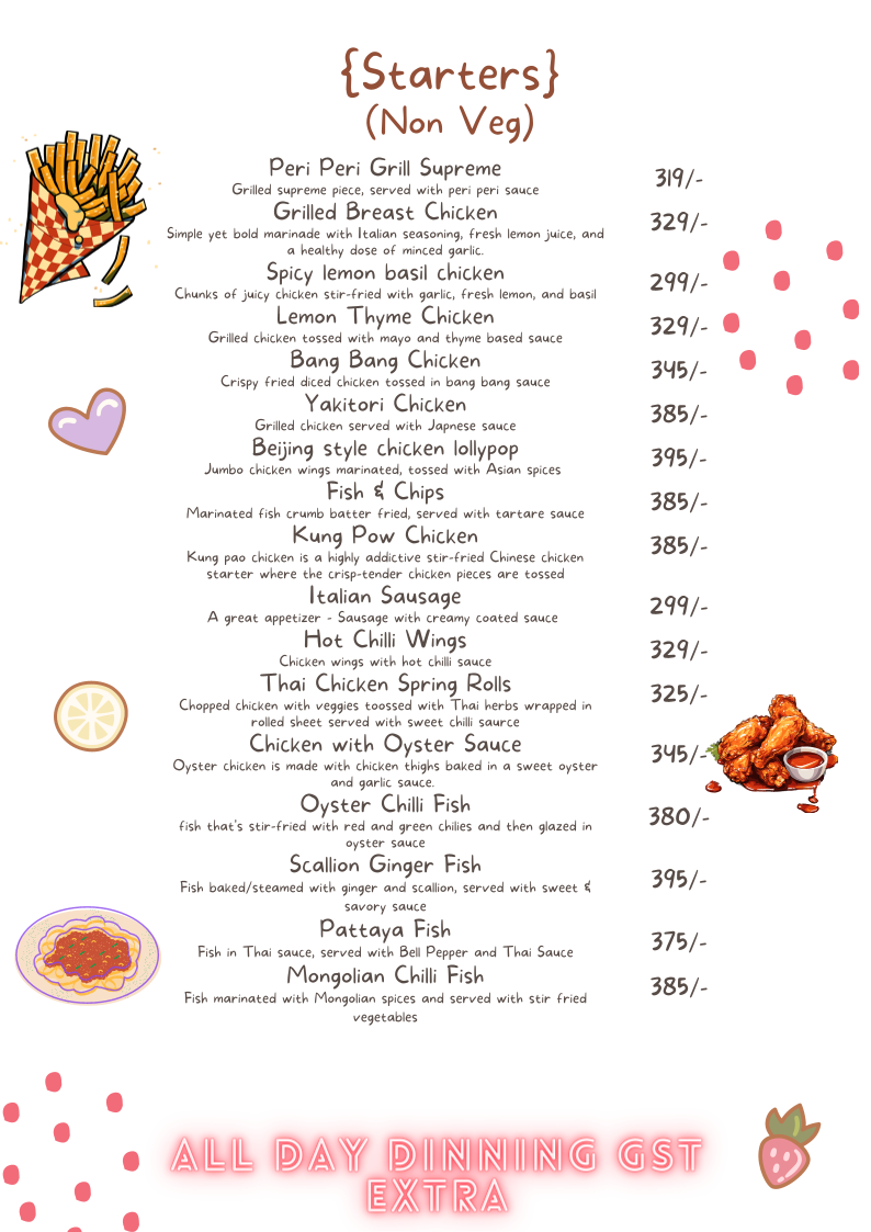This charming café specializes in a delightful fusion of Italian and Asian cuisines, with a menu curated thoughtfully to please every palate. Renowned for its sumptuous offerings, Le Celebration has something to satiate everyone from pasta aficionados to those looking for a hearty dessert. Their Pasta dishes are a standout feature—think comforting bowls of creamy Alfredo or spicy Arrabiata, with choices of penne or spaghetti, all priced between ₹299 to ₹339. If rice or noodles catch your fancy, the Chilli Garlic Chicken and Kimchi Fried Rice are sure to tantalize your taste buds.